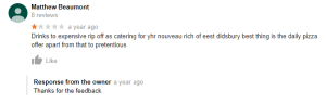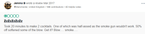 We’ve omitted any and all 1* reviews that are left by the “justice brigade” whenever someone sells their story to a newspaper or writes a Facebook status without context or proof about how a bar or restaurant has wronged them and they must pay for their crimes that may or may not have been committed. Those reviews are often written by vile people with nothing better to do than to read one side of a story and effectively try and close a business down in the name of justice. Very often those reviews will be left by people that haven’t been to the venue, don’t know where the venue is and are conveniently Facebook friends with the offending Facebook status’s owner. Those people deserve nothing, and they are a drain on society.